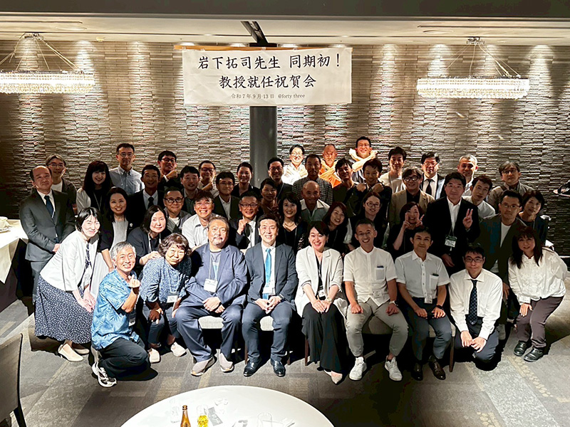 2025年9月13日に岐阜シティタワー43にて2001(平成13)年卒のクラス会を開催しましたので報告いたします。岩下拓司君が滋賀医科大学消化器内科の主任教授に就任したため、その祝賀会も兼ねた本会には幹事橋本孝治君の取り仕切りのもと47名の参加がありました。卒業以来の再会となった旧友や当時と変わらぬ姿の同級生も多く、昔話や近況報告などで大いに盛り上がりました。祝賀会の主賓である岩下君は、挨拶の中で自身が学生時代に授業や実習に十分に参加できなかったことを振り返り、同級生への謝罪と感謝を述べていましたが、解剖班やポリクリ班のメンバーが誰であったかは失念してしまったようです。教授となった現在は、当時の経験を踏まえて学生を「適切に指導」しているとのことでした。教授就任のお祝いとして三重県人会からの贈り物も届いていました。最後に岩下君のますますのご活躍を一同で祈念し、盛会のうちに閉会となりました。