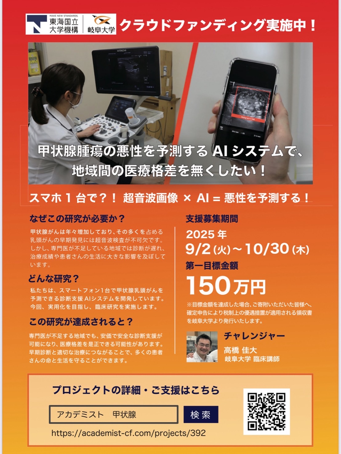 現在、当科では甲状腺腫瘍の悪性を予測する、